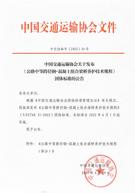 浩渺長江水,金陵暑氣濃。7月22日,中國交通運(yùn)輸協(xié)會新技術(shù)促進(jìn)分會在南京針對團(tuán)體標(biāo)準(zhǔn)《公路中等跨徑鋼-混凝土組合梁橋養(yǎng)護(hù)技術(shù)規(guī)程》(以下簡稱:《技術(shù)規(guī)程》)舉行發(fā)布儀式。