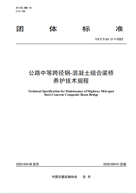 13 公路中等跨徑鋼—混凝土組合橋梁養(yǎng)護(hù)技術(shù)規(guī)程 中交第二公路勘察設(shè)計研究院有限公司